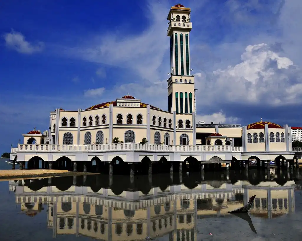 هو مسجد جزيرة بينانق العائم والذي يبدو بمظهرة الرائع تحفة معمارية جذابه ويقع في مكان مميز على البحر، مما يزيده جمالاً وروعة. ويخيل لناظرين اليه وكانه يطفوا على الماء وهو كالعائم والشامخ بجمال منظره وبتصميمة الحديث الذي زادته جمالا الزخارف المغربيه وايضا مآذنه المذهلة بارتفاعها والمتميز بانورامامية مذهلة على البحر.